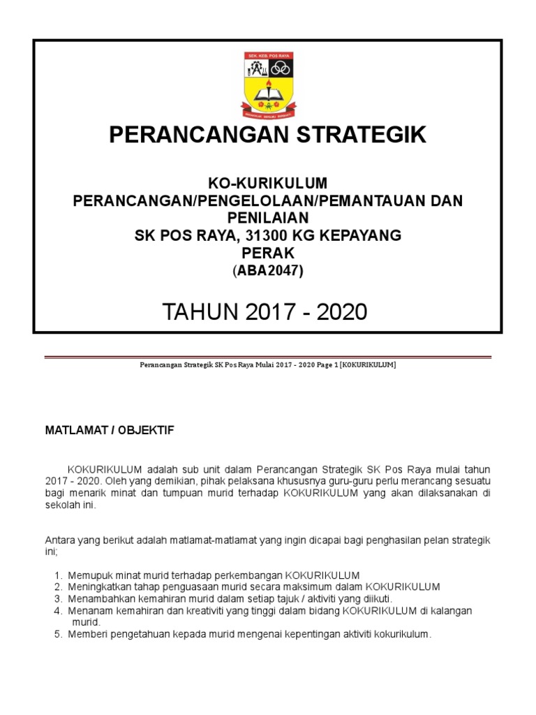 Pelan Strategik Kokurikulum Skpr 2017 2020 Pdf