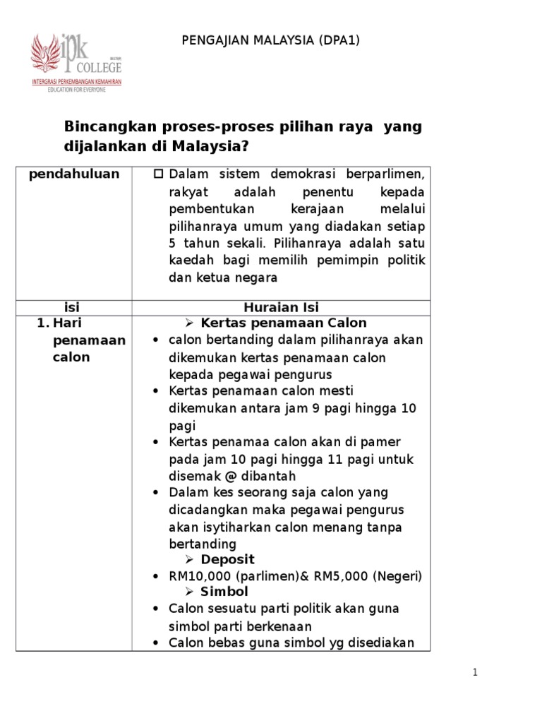 View Politik_Proses Pilihan Raya 1pdf from ELECTRIC 0133 at German-Malaysian Institute. Selepas peristiwa Perang Dunia Kedua berakhir pada tahun 1945 diikuti dengan pengunduran Tentera Jepun dari Tanah Melayu semangat nasionalisme di kalangan rakyat Tanah Melayu. PENGAJIAN MALAYSIA Saturday 25 July 2015 PROSES PILIHAN RAYA Pilihan Raya Umum atau Pilihan Raya Kecil di Malaysia mempunyai beberapa peringkat iaitu- Pengeluaran writ.